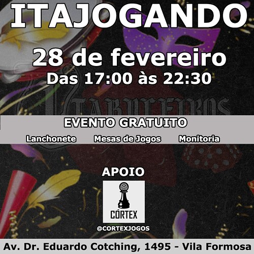 Sábado dia 28 teremos nosso tradicional ITAJOGANDO!