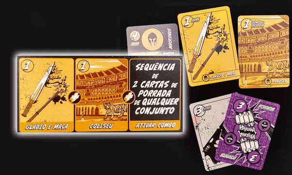 Cada um deles possui um “combo”. Um efeito que é disparado assim que o jogador ataca ou se defende com uma determinada combinação de cartas. A combinação necessária é exclusiva de acordo com cada personagem: