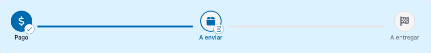 A pagar → Pago → A enviar → Enviado → A entregar → Entregue