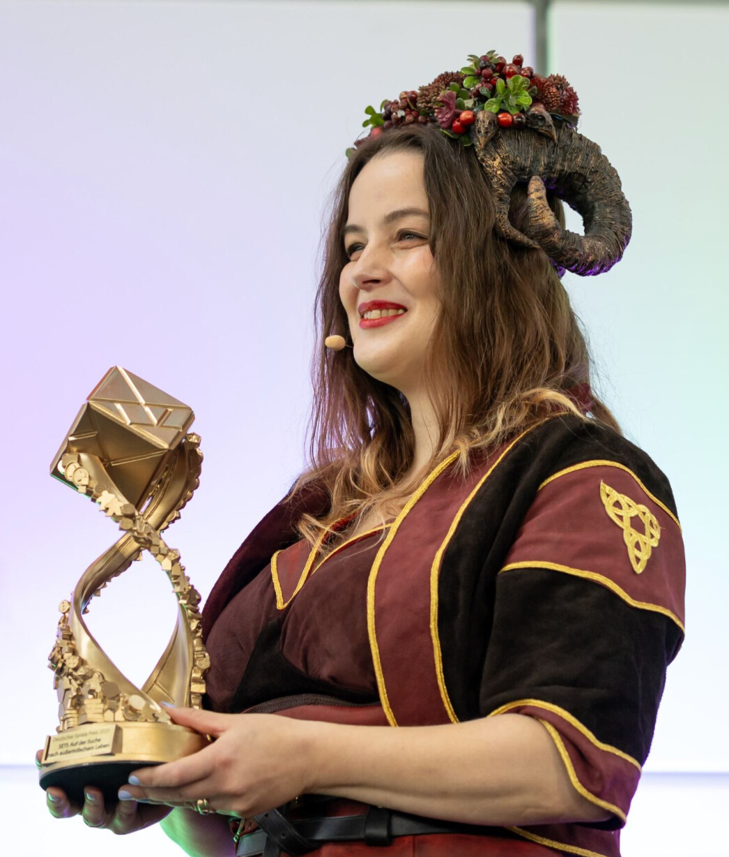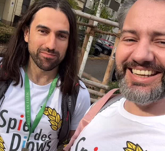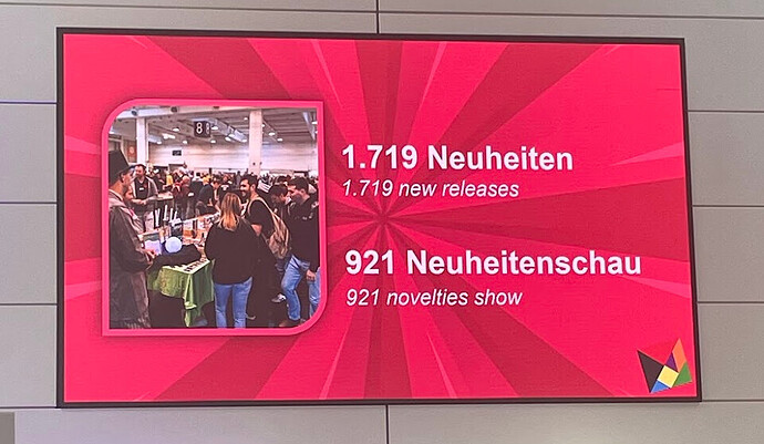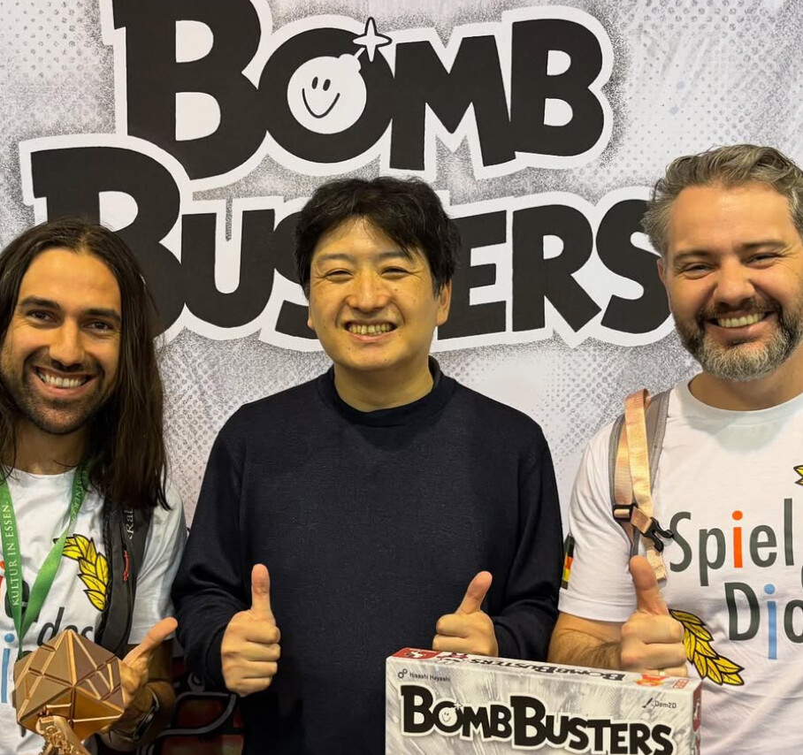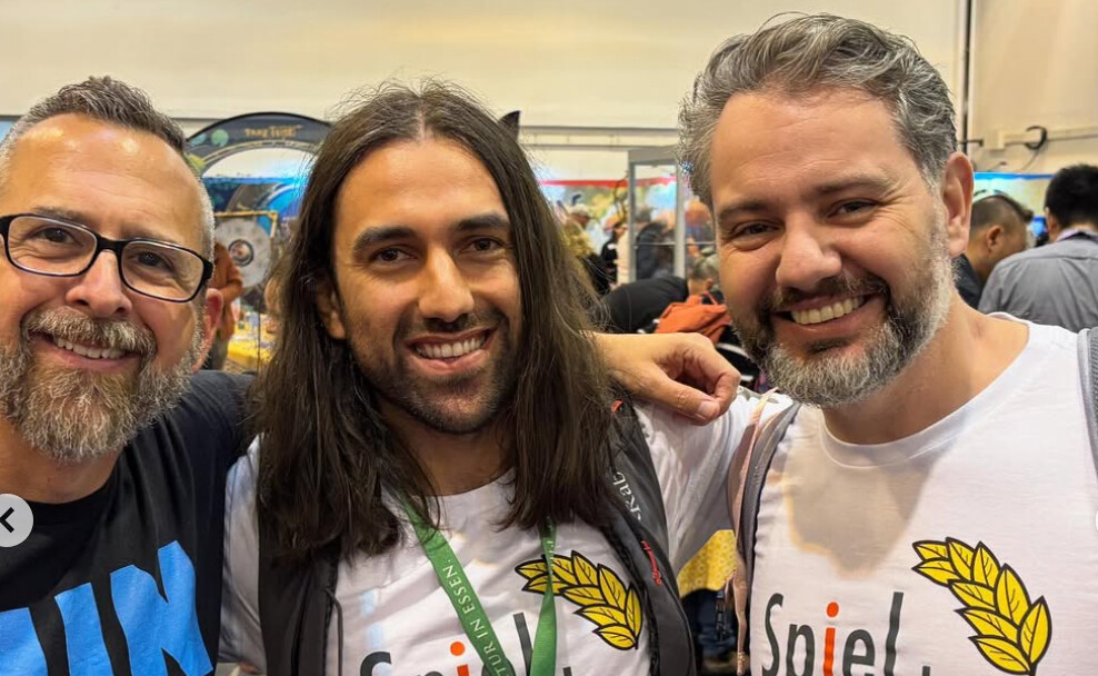 Depois de beber toda a Coca, água com gás, suco e café disponíveis na faixa, acompanhamos a premiação do Deutscher Spiele Preis (German Game Award) 2025. Prêmio dado aos 3 primeiros colocados em uma votação da comunidade alemã de jogadores jogos de tabuleiro lançados na Alemanha. Os vencedores foram 1) SETI 2) Endeavor 3) Bomb Busters (lista completa aqui). Vários discursos depois, foi muito legal ver como os caras que admiramos são só nerds nervosos em outros idiomas.