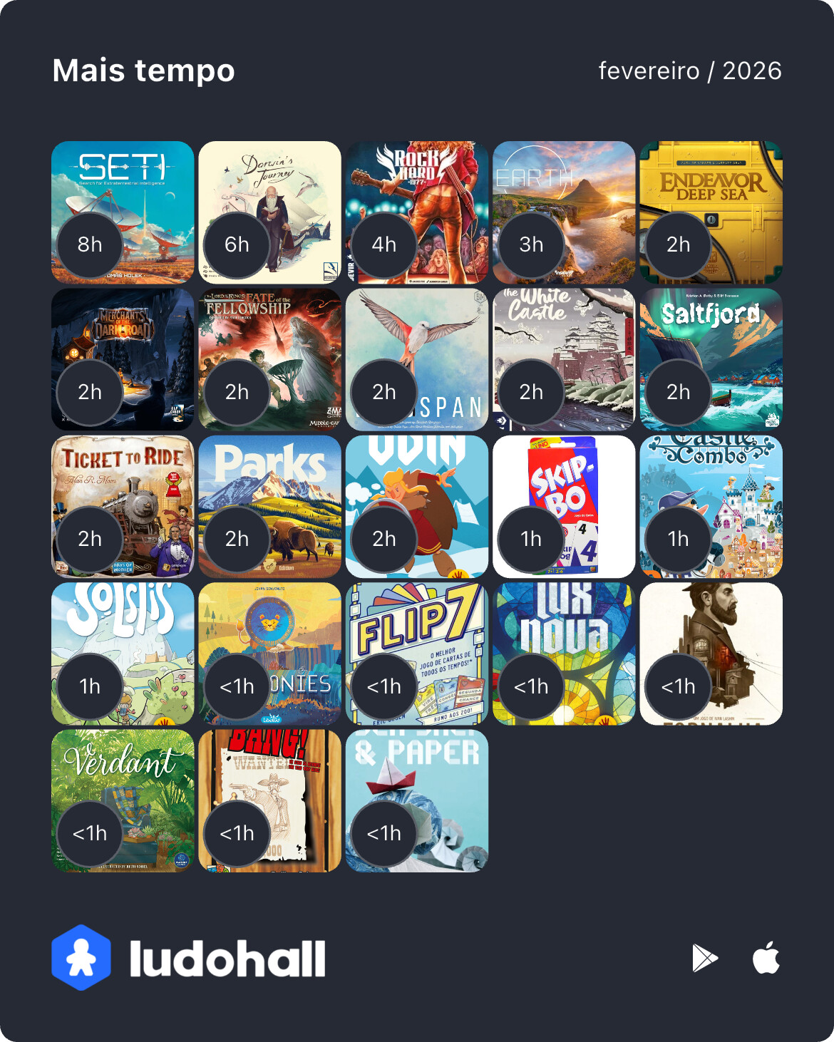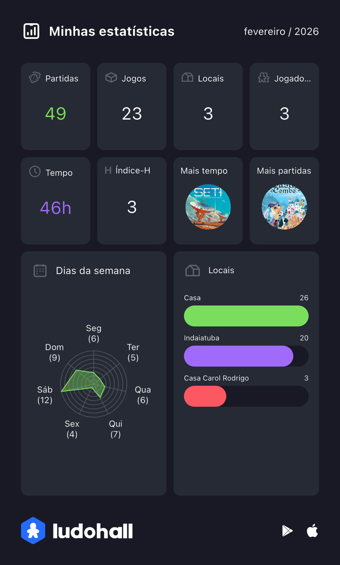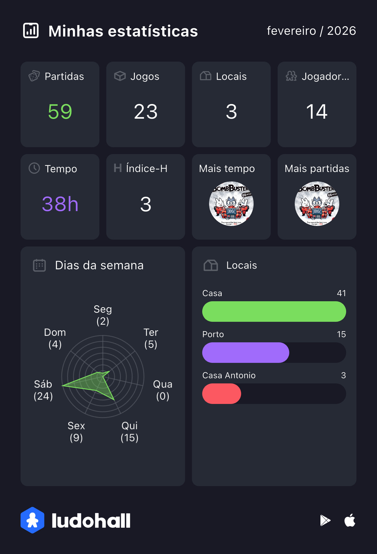 Como havia previsto no último post, não tinha como superar Janeiro de maneira alguma no número de partidas e jogos. Mas, Fevereiro não fez feio não. O carnaval ajudou a gerar mais partidas e foi um mês excelente
