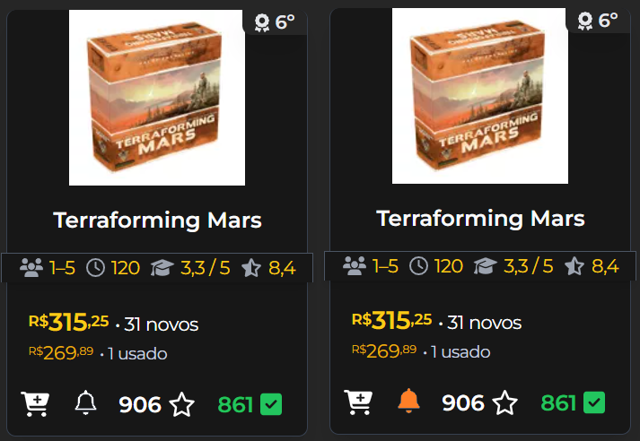 Ótima sugestão. Poderia também ser implementada em conjunto com uma idéia que eu dei há um tempo atrás, de mostrar na lista dos jogos um ícone de sino indicando se há um alerta ativado ou não para aquele jogo, conforme imagem abaixo (esquerda, alerta inativo; direita, alerta ativo):