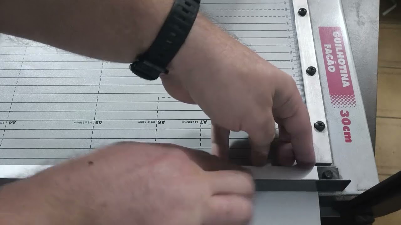 Como inserir um gabarito simples na sua guilhotina com protetor de mão e ter uma precisão delicinha.
