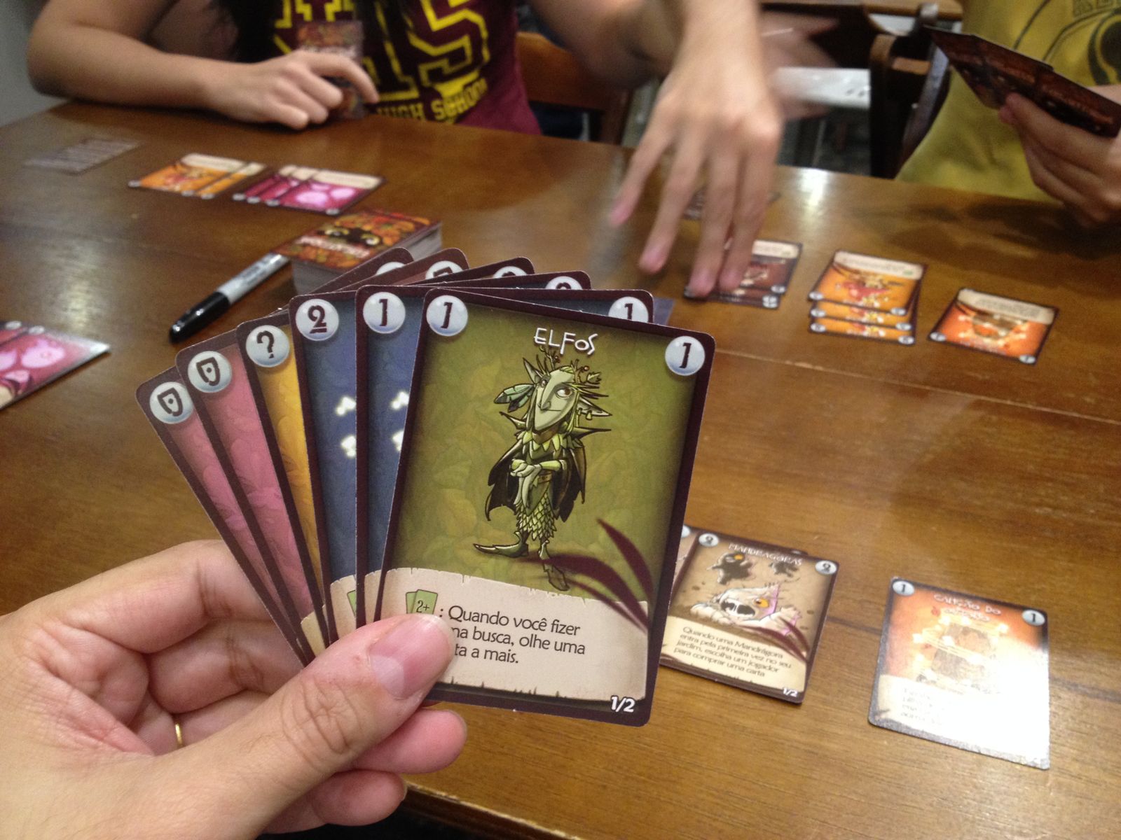 Poderes Assimétricos: Cada raça tem seu truque! Os Anões deixam você fuçar o lixo (que é o descarte) à vontade. Os Goblins te dão uma cartinha extra. Os Elfos turbinam suas buscas. Gerenciar essas habilidades é a chave da vitória. ![]()