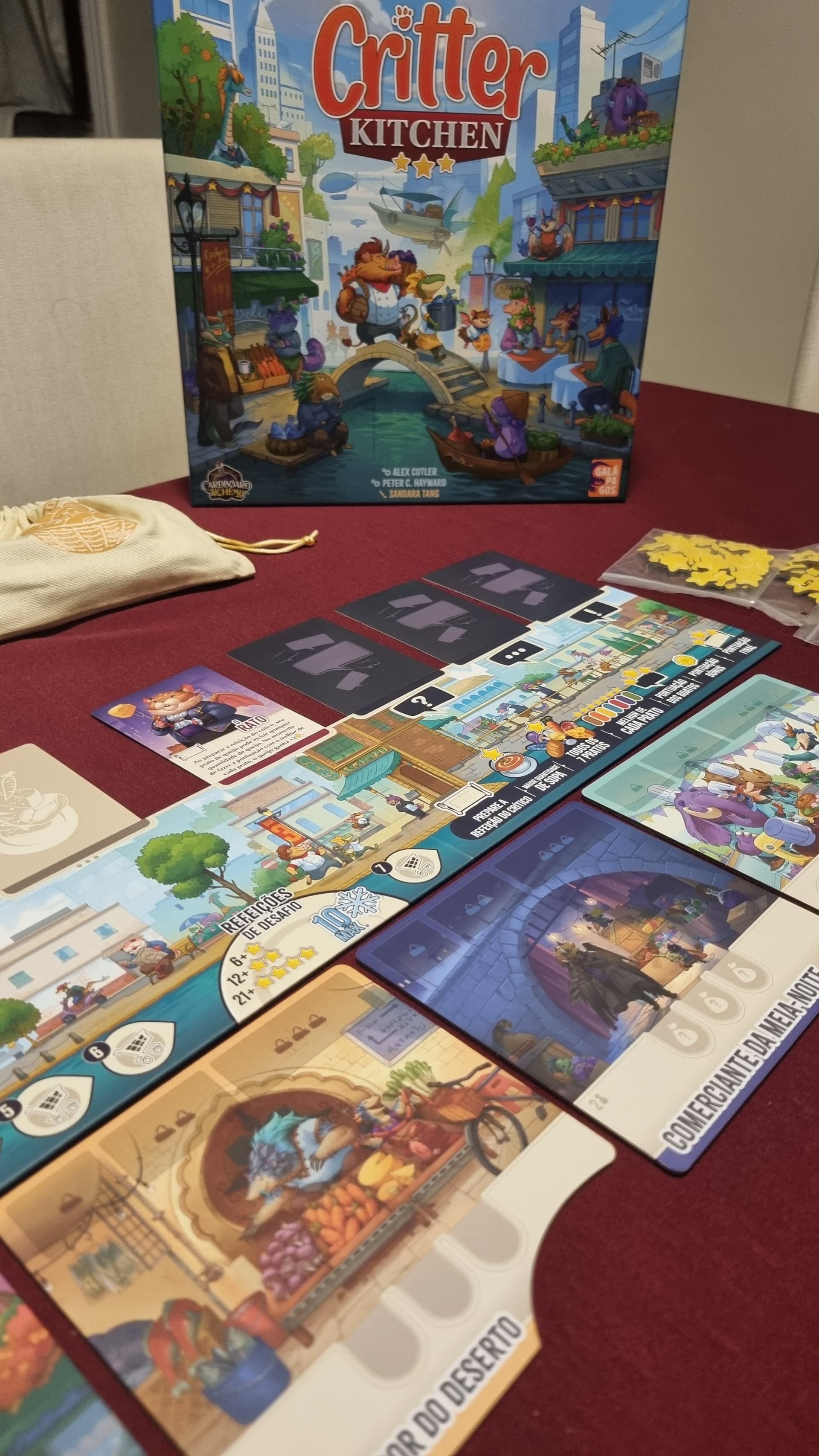 Critter Kitchen tem uma mecânica muito dinâmica, que não sentimos que com o aumento de jogadores o jogo alonga desnecessariamente, e as decisões em cada rodada são bem legais.