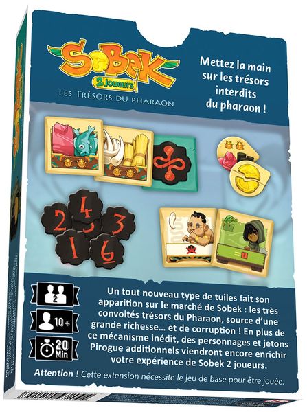 Sobek: 2 Pessoas nasce como uma reimplementação do jogo Sobek, criado por Bruno Cathala e lançado em 2010. Desde o lançamento original, os dois já compartilhavam muitas mecânicas em comum, como o draft das peças (na época, cartas), coleção de conjuntos, poderes especiais e uma pontuação negativa na forma da corrupção. No entanto, o jogo não tinha o suficiente para se sobressair em relação aos concorrentes de sua categoria, principalmente com outro jogo muito conhecido que havia saído somente um ano antes: Jaipur, de Sébastien Pauchon.