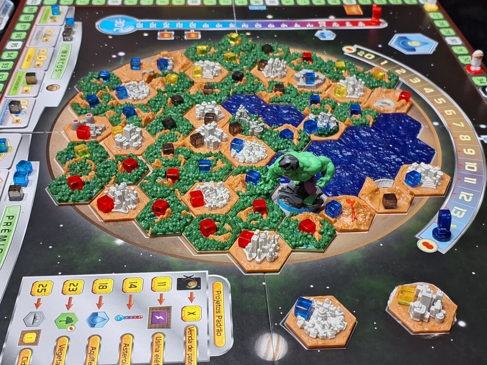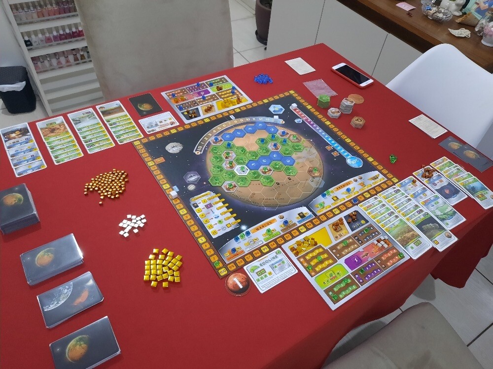 Outro gigante que brilha no modo solo é Terraforming Mars. Nele, você assume o controle de uma corporação com a missão monumental de tornar Marte habitável. Sozinho, o jogo se transforma em um quebra-cabeça de gerenciamento de recursos e otimização, onde você deve equilibrar a compra e execução de mais de 200 projetos diferentes para aumentar o oxigênio, a temperatura e os oceanos do planeta. É o tipo de jogo ideal para quem quer um desafio denso de estratégia para preencher o tempo, competindo contra o próprio sistema do jogo para alcançar marcos e prêmios antes que a terraformação se complete.