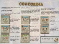 Concordia é um jogo de estratégia que requer planejamento antecipado e consideração das jogadas do seu oponente. Cada partida é diferente, não apenas pela sequência de novas cartas à venda, mas também pelo layout modular das cidades. (Um lado do tabuleiro mostra todo o Império Romano com 30 cidades para 3-5 jogadores, enquanto o outro mostra a Itália Romana com 25 cidades para 2-4 jogadores.)
