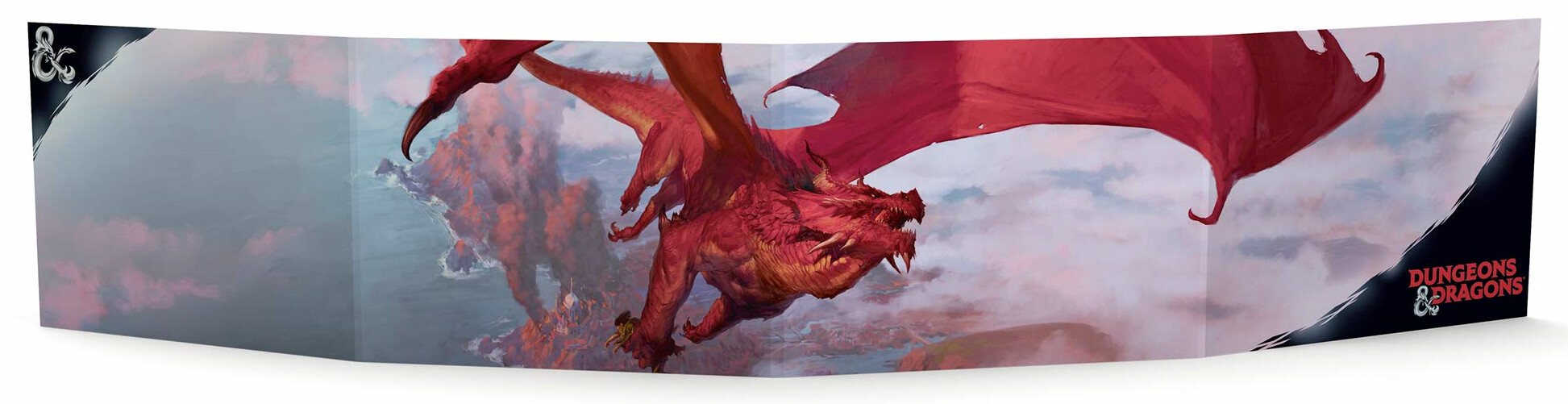 Este prático escudo para o DM é dividido em quatro painéis e conta com duas faces distintas.