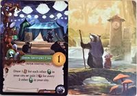 Além dos cards com ilustrações fofas, o tabuleiro é um deleite para os olhos com a Árvore Perene 3D de 2 andares, meeples coloridos e com silhuetas dos animais além de marcadores lindos.